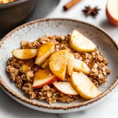 For a crispy top, spray a couple of sprays of cooking spray, such as @frylighthq, over the top of the oats. This step gives your oats a delightful crispiness, but it’s optional if you prefer a softer finish.