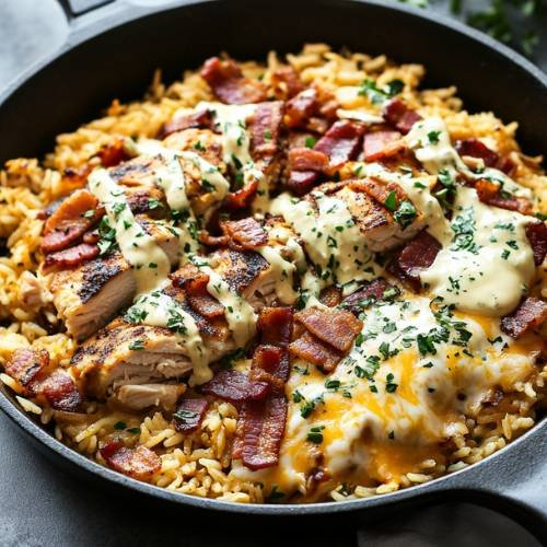 This BBQ Chicken and Bacon Rice is a perfect meal when you want something comforting and full of flavor without spending hours in the kitchen. The combination of tender chicken, crispy bacon, smoky BBQ sauce, and cheesy goodness will leave your taste buds dancing. Plus, it’s a one-pan wonder that makes cleanup a breeze. Give this recipe a try the next time you’re looking for a quick, satisfying meal, and I promise it’ll become a new favorite in your household!