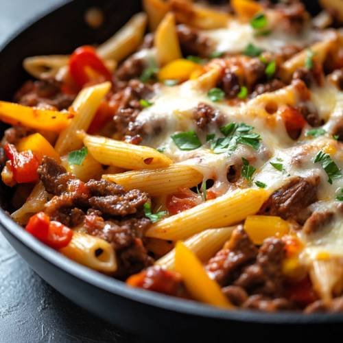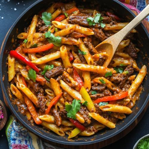 Cheesy Fajita Beef Pasta  A Spicy, Cheesy One-Pot Wonder!