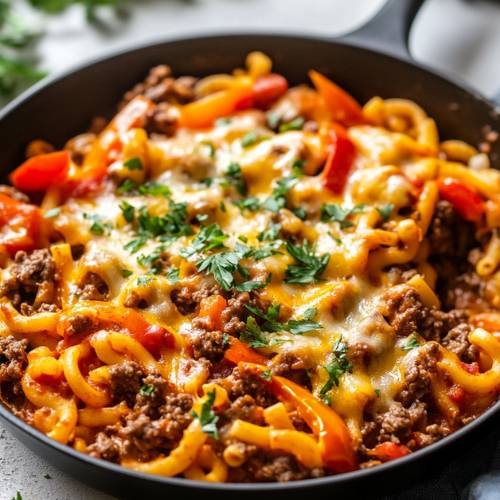 This Cheesy Fajita Beef Pasta is the kind of meal I make when I want something cozy, flavorful, and low-effort but still tastes like a big warm hug in a bowl. It’s got everything  meat, spice, pasta, and melty cheese. Plus, the one-pot method makes cleanup a breeze. Try it once and you’ll see why this dish is a permanent member of my dinner rotation!