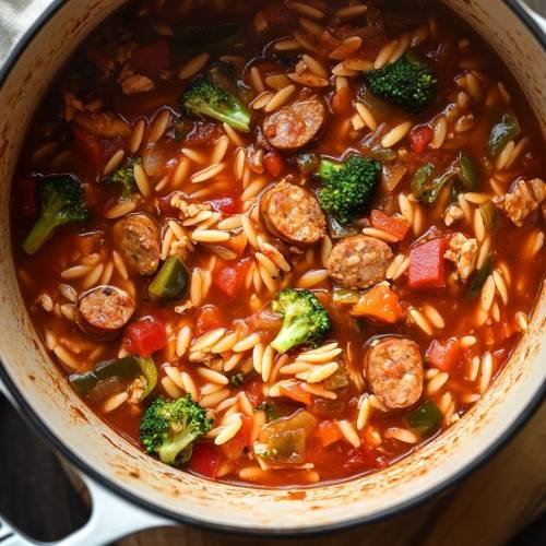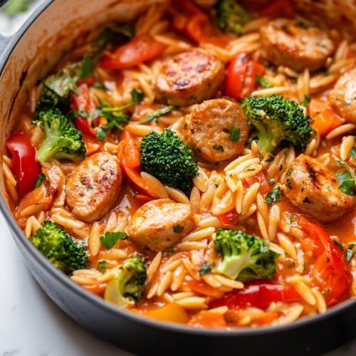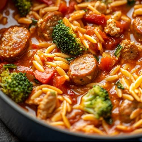 Hey, foodies! If you’re in the mood for something flavorful, filling, and oh-so-easy to make, this Chicken Sausage and Tomato Orzo is just the dish for you! It’s packed with savory chicken sausage, juicy cherry tomatoes, and perfectly cooked orzo, all brought together with a blend of garlic, herbs, and melted cheese. This one-pan wonder will have everyone asking for seconds! Let’s dive right into this simple yet delicious recipe.