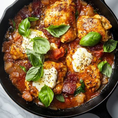 This chicken with tomato, pancetta, and mozzarella risotto is perfect served with a fresh side salad or some garlic bread for extra crunch. For a complete meal, you can add a few roasted veggies or a squeeze of lemon to brighten things up.