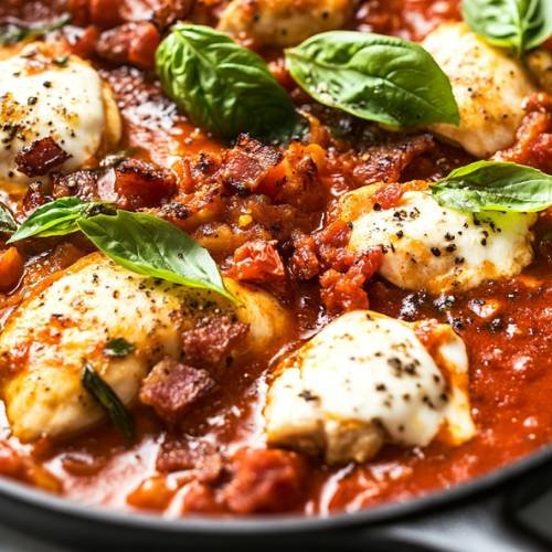 Chicken with Tomato, Pancetta & Mozzarella Risotto A Flavorful Twist on a Classic Dish!