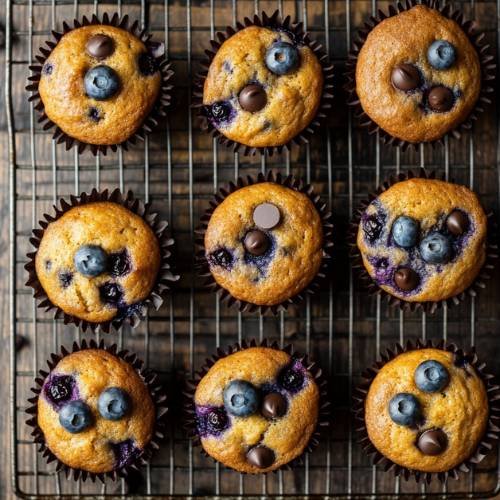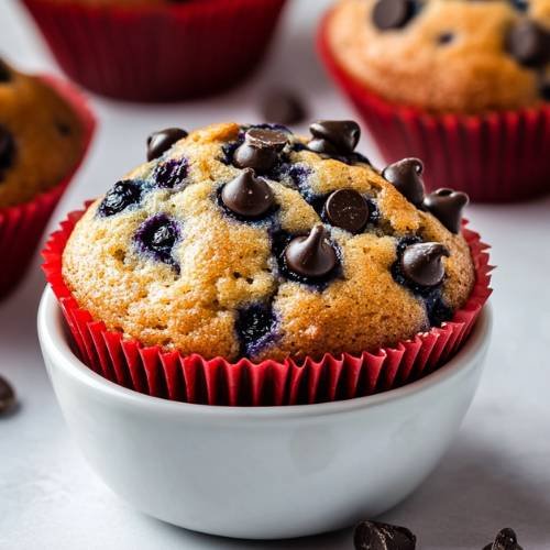 Now comes the fun part fold in your blueberries and chocolate chips! Be gentle to avoid squishing the blueberries. Make sure the chocolate chips are evenly distributed throughout the batter, giving each muffin a perfect balance of chocolatey goodness and fruity bursts.