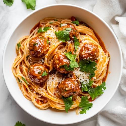Serve the linguine and meatballs with a sprinkle of fresh parsley for a burst of color and flavor.