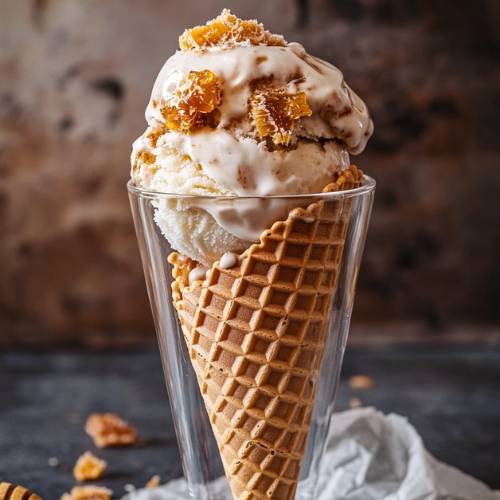 Serve your honeycomb ice cream in bowls or cones for the perfect treat. It’s delicious on its own, but if you want to take it to the next level, drizzle some caramel sauce or sprinkle extra crushed biscuits on top. For a fun twist, top it with a few pieces of honeycomb candy or some fresh fruit!