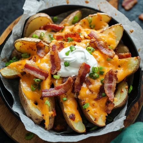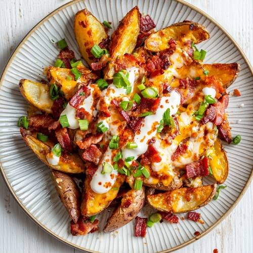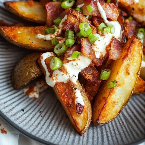 Loaded wedges like these are what food dreams are made of crispy, spicy, cheesy, and totally comforting. Whether you’re battling a hangover or just need a food hug, this recipe is ready to deliver. Grab your plate, dig in, and enjoy every delicious bite. Trust me, one potato is never enough.