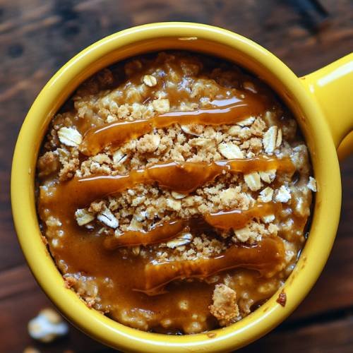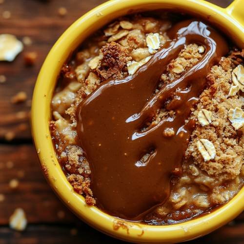 Once baked, remove the oats from the oven. For an extra indulgent touch, top your oats with a bar of your choice, whether it’s a protein bar or a piece of chocolate, and drizzle another 10g of melted spread over the top. This step adds a finishing touch of richness and makes the oats even more delicious.