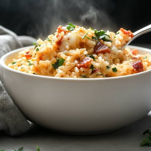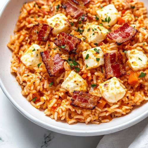 Hey there, food lovers! If you’re looking for a savory, comforting meal that’s easy to make, this One-Pot Smoky Bacon & Mozzarella Rice is just the dish you need. The smoky bacon, melted mozzarella, and the rich flavors of sundried tomatoes and spices create a meal that’s packed with flavor. Plus, it’s all made in one pot no fuss, no mess! Whether you’re cooking for a cozy dinner or a meal prep for the week, this dish will quickly become a favorite. Let’s get cooking!