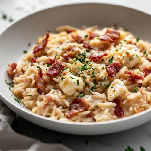 One-Pot Smoky Bacon and Mozzarella Rice A Deliciously Flavorful Dish