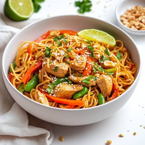• Serve  Once everything is mixed and warmed through, plate the noodles. Garnish with chopped cilantro and crushed peanuts for that extra crunch!