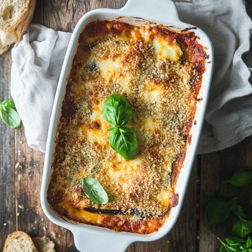 Sprinkle some Italian herbs or dried basil over the cheese and tomatoes. This step adds a beautiful aroma and brings that true Parmigiana flavor. If you have fresh basil, even better tuck a few leaves in for a fresher taste.