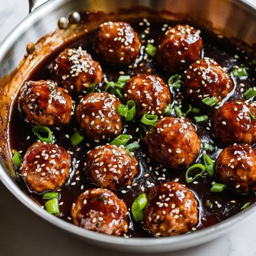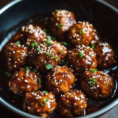 Sprinkle sesame seeds over the meatballs for a bit of crunch and flavor.