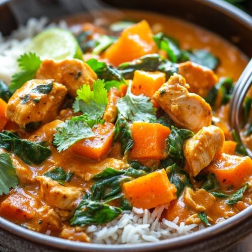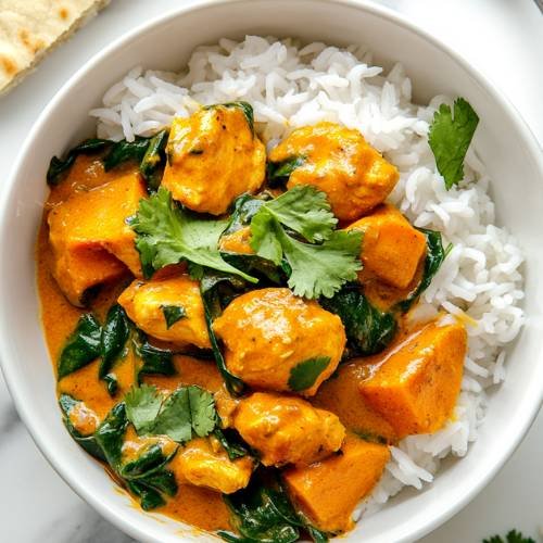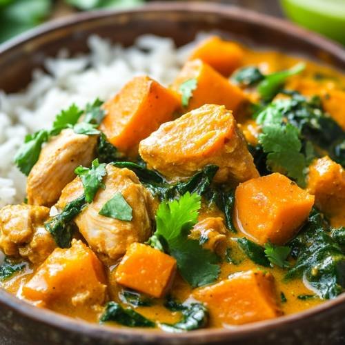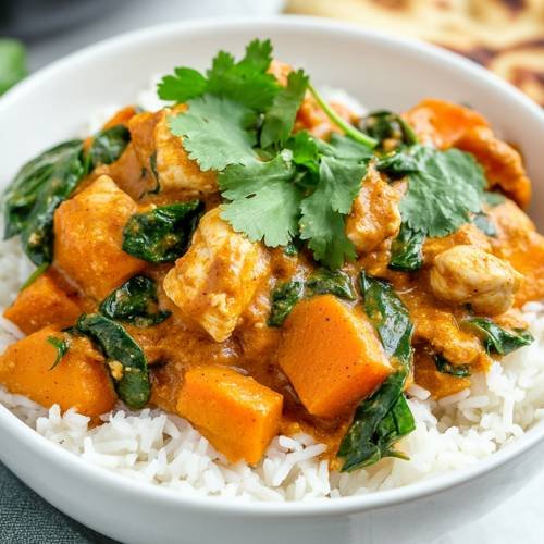 There’s something so comforting about a warm bowl of curry especially when it’s this easy and good for you. Whether you’re meal prepping for the week or serving it fresh for dinner, this Sweet Potato, Chicken & Spinach Curry hits all the right notes. It’s rich, it’s healthy, and it makes you feel good after eating.